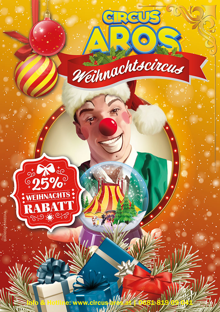 Dieses Jahr sind wir über die Weihnachtsfeiertage zu Gast in Schwechat. Am Platz nahe der Bio-Mühle zeigen wir ein neu zusammengestelltes, kurzweiliges Weihnachtsprogramm mit viel Spaß, Spannung und tierisch guter Laune.